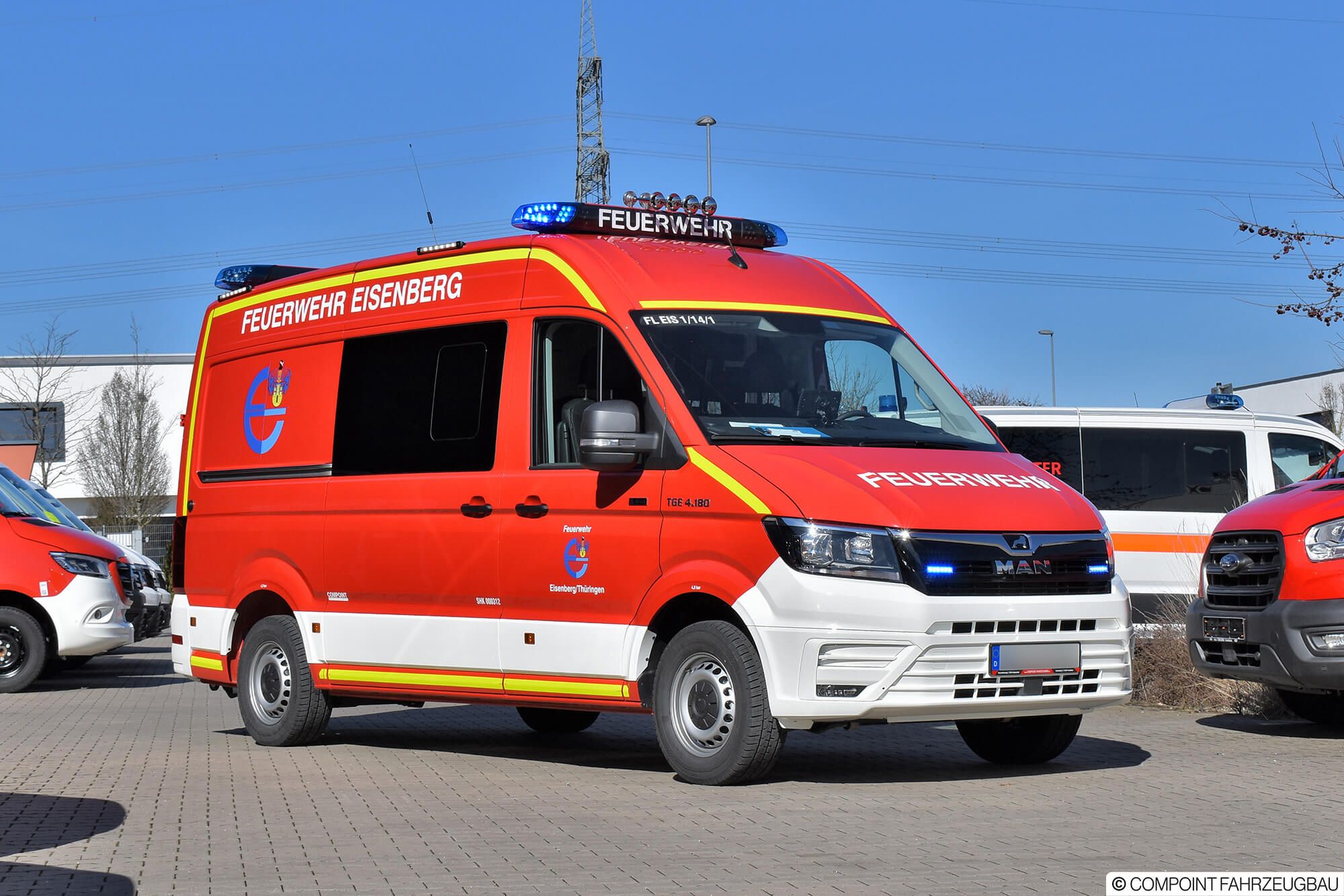 Die Feuerwehr Eisenberg (Saale-Holzland-Kreis) erhielt ein neues MZF auf Basis eines allradgetriebenen MAN TGE mit 5 Sitzplätzen.