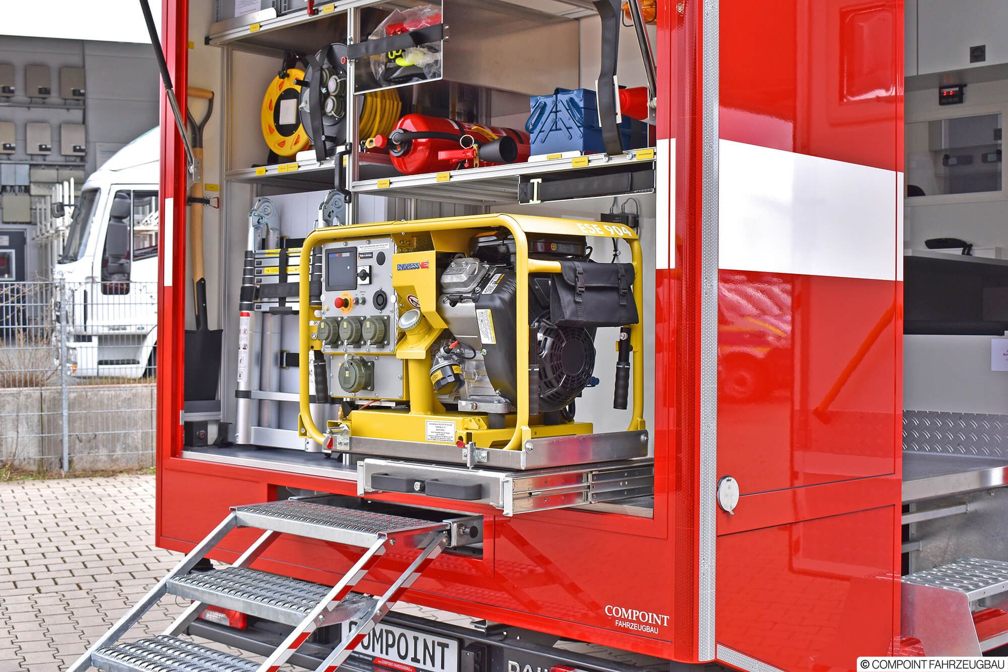 - Stromerzeuger 9 kvA im Heck verlastet
